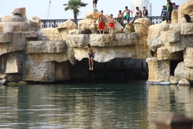 Iraklı Gençler Serinlemek İçin Denize Girdi