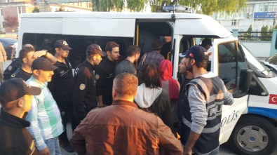 Düzce’de sosyal medya üzerinden terör propagandası yaptıkları iddiasıyla gözaltına alınan ve adliyeye sevk edilen 5 üniversite öğrencisinin adliye önünde bekleyen arkadaşlarına bir başka grup saldırdı.