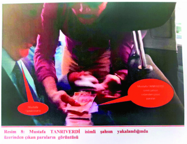 İşadamı, içinde 200 bin TL ve 300 bin ABD doları bulunan çantayı şüpheli Tanrıverdi'ye teslim etti ve kendisinden 2 tane flashbellek aldı. Bu işlemin tamamlanmasının ardından gözaltı işlemi yapıldı. Yapılan üst aramasında Tanrıverdi'nin üzerinde 5 tane flashbellek daha bulundu. Tanrıverdi, 5 flaş bellek için, geçmişte MKEK'de AR-GE müdürü olarak görev yaptığını, zaman zaman söz konusu projeler üzerinde incelemelerde bulunduğu gerekçesiyle bütün bilgileri üzerinde taşıdığı yönünde savunma yaptı.
