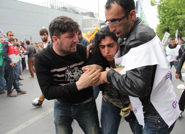 HDP eski Milletvekili Sebahat Tuncel de müdahalenin ortasında kaldı. Partililerin yardımıyla alandan çıkmaya çalışan Tuncel, zor anlar yaşadı.