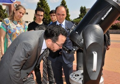 Aydın Adnan Menderes Üniversitesi (ADÜ) Amatör Astronomi Topluluğu tarafından Tralleis Meydanında düzenlenen Astronomi etkinliğinde, Merkür’ün güneşin önünden geçişini ADÜ Rektörü Prof. Dr. Cavit Bircan öğrencilerle birlikte izledi.