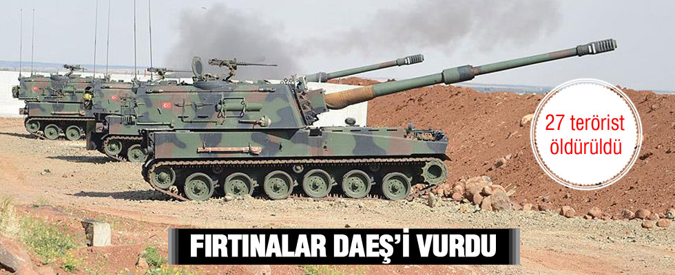 TSK’ya ait Fırtına obüsleri ve ÇNRA Bataryaları ile yapılan atışlar ve Koaliysyon güçleri tarafından icra edilen üç hava harekatı sonucunda toplam 27 DEAŞ’lı etkisiz hale getirildi.