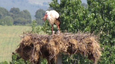 Kocabaş Çayı havzasında bulunan köyümüzde, leylekler her yıl 4 yavru büyütüyor. Bu günde yavru leyleklerin yumurtadan çıktıklarını gördüm. Küçük oldukları için saymakta zorlandım. Şu an yuvada 3 leylek yavrusu var.
