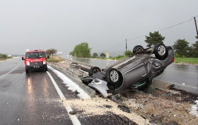 Kastamonu’da sağanak yağışın ardından başlayan dolu nedeniyle kayganlaşan zeminde kontrolden çıkan otomobil takla attı. Kazada 3 kişi yaralandı.
