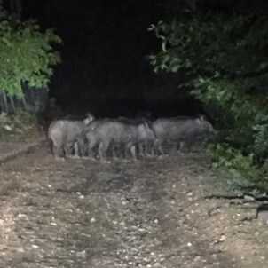 Kent merkezinde yakın olan mahallede gece geç saatlerde sürü halinde dolaşan domuzları gören vatandaşlar paniğe kapılıp korku dolu anlar yaşıyor. Sokakta aniden domuzlarla karşı karşıya kalan vatandaşlar saldırabileceği endişesiyle çareyi kaçıp yüksek yerlere çıkmakta ya da eline geçen bir cisimle kendisini savunmakta buluyor.