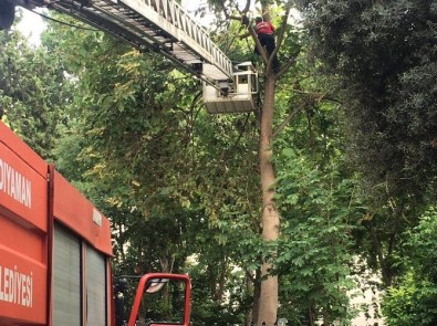 Dalları kesen itfaiye ekipleri vatandaşların üzerine düşme ihtimali olan dalları herhangi bir kazaya sebebiyet vermeden kesti.