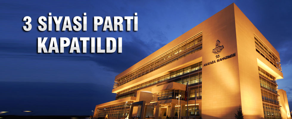 Anayasa Mahkemesi, Adaletçi Kurtuluş Partisi, Ergenekon Partisi ve Gönül Birliği Yeşiller Partisinin dağılmış sayılarak, hukuki varlıklarının sona erdiğine karar verdi Böylece Türkiye'de faaliyet gösteren siyasi partisi sayısı 94'e indi.