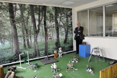Merkez bünyesinde çalışılan robot projelerini aktaran Prof. Dr. Abdülkadir Erden, “İlgi alanımız tamamen robotlar ve robot uygulamaları. Bu kapsamda şuanda altı tane proje yürütülüyor. Bunlardan biri; seralarda kesme gül hasadı yapan bir robot çalışması. TÜBİTAK TEYDEB destekli iki yıldır süren bir proje ve sonuçlanma aşamasında. Diğer projelerimizden mayın tarama robotu, bildiğimiz klasik mayın taramadan biraz farklı bir mekanizmaya sahip. Yeni başladığımız bir proje. Uydu tasarımı ile ilgili bir çalışmamamız var. Henüz başlangıç aşamasında ama yine çalışmaları devam ediyor. Uzun süredir devam eden bir başka proje ise çok amaçlı, insanlara yardımcı olabilecek bir robot çalışması. Çok amaçlı bu robot gerektiğinde bir müzede rehber, engelli bir kişiye yol gösterici, bir AVM’ de yol gösterebilecek, bir fabrikada ya da bir laboratuvarda gece bekçiliği yapabilecek, lokantada garsonluk yapabilecek bir robot. Farklı özellikleri modüler bir yapı içerisinde topladık ve çok amaçlı bir robot yapmayı planladık. Aynı zamanda bir hasta veya bir engellinin evde bakımını kendi yetenekleri içerisinde sağlayabilecek. Yine benzer şekilde hastanelerde hizmet verebilecek. Bunların hayata geçirilmesi ise gerekli destek sağlandığı takdirde birkaç yılı geçmez” ifadelerini kullandı.