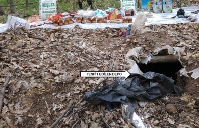uçaksavar fişeği, 2 adet tabanca şarjörü, 2 adet küçük el telsizi, 1 adet mesafe ölçer dürbün, 350 kg un, 100 kg peynir, 95 kg pirinç, 75 kg bulgur, 50 kg makarna, 40 kg sıvı yağ, 35 kg şeker, 20 adet maya, 9 kg zeytin, 9 kg çikolata, 7 kg çay, 6 çift ayakkabı, 4 kg reçel ele geçirilmiştir” denildi.