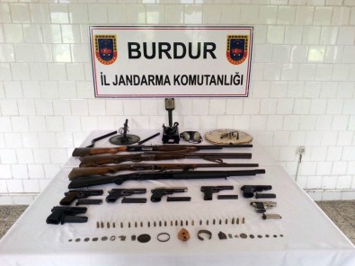 Burdur’un Bucak ilçesi Kocaaliler beldesinde jandarmanın bir evde yaptığı aramada, çok sayıda tabanca, tabanca fişeği ve av tüfeği fişeğinin yanı sıra tarihi eser değeri taşıyan sikkeler ele geçirildi.