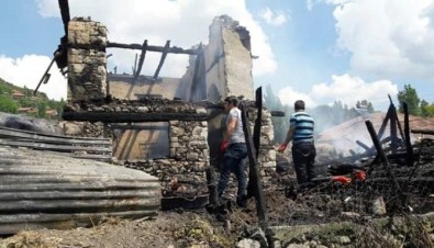 Burdur’un Gölhisar ilçesinde yaşlı bir kadına ait ev çıkan yangında küle döndü.