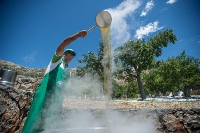 Kadir Dursun, “Ağaçlardan silkelenelen dut geleneksel yöntemlerle hijyenik koşullarda sıkılıyor. Sıkılan dut suyu kazanlarda kaynatılıyor. Kaynatılan dut suyu güneşte bekletiliyor. Özel kaplarda güneşte bekletilen pekmezin üzerine örtülen ince tül sayesinde pekmezin içerisine yabancı maddelerin girmesi engelleniyor” dedi.