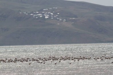 Van Gölü havzasının her yılki ziyaretçileri flamingolar, havaların ısınmasıyla birlikte biraz geçte olsa Erçek Gölü Sulak Alanı’na geldi.