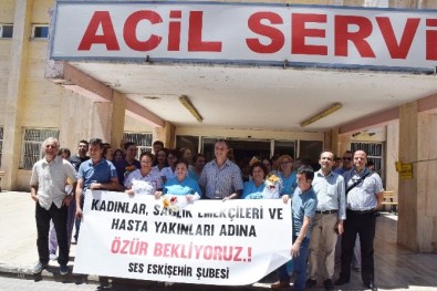 Sağlık ve Sosyal Hizmet Emekçileri Sendikası (SES) Eskişehir Şube üyeleri, Başbakan Binali Yıldırım’ın, “Acil servislere artık kız bakmaya gidiliyor” açıklamasına Osmangazi Üniversitesi Tıp Fakültesi Acil servisi önünde toplanarak tepki gösterdi.