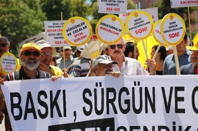 Grup adına basın açıklaması yapan Eğitim Sen Genel Başkanı Kamuran Karaca, Eğitim Sen üyelerine ve yöneticilere yönelik ‘cadı avı’ başlatıldığını iddia ederek, “Çok sayıda Eğitim Sen üyesi sendikal faaliyetleri ve demokratik eylemleri nedeniyle soruşturma geçirmiştir. Bazı arkadaşlarımız keyfi kararlarla sürgün edilmiş, bazı arkadaşlarımız sosyal medya paylaşımları ve attıkları sloganlar gerekçe gösterilerek açığa alınmıştır. Büyük bölümü siyasal talimatlarla hayata geçirilen ve tamamı keyfi olan hukuk dışı tutumlar üzerinden en temel sendikal faaliyetlerimiz bile ‘yasa dışı’ gösterilmeye çalışılmakta, sendikal faaliyetlerimiz açıkça engellenmek istenmektedir” dedi.