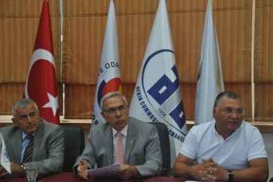 Aydın Ticaret Borsası’nda düzenlenen ortak basın toplantısına Aydın Sanayi Odası Başkanı Mehmet Yunus Şahin, Sanayi Odası Meclis Başkanı Ercan Çerçioğlu, Ticaret Odası meclis Başkanı bahri Erdel, her iki odanın yönetim kurulu üyeleri ve genel sekreterleri katıldı.