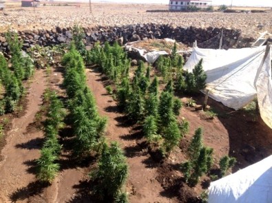 Jandarma Karakol Komutanlığı’nca 1 şüpheliye ait ev ve tarlasında 42 bin kök Hint keneviri, Hazro/Teknebaşı