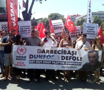 Kızılay’da toplanan Vatan Partisi’nin Öncü Gençlik üyeleri, Ankara’ya ikili görüşmelerde bulunmak üzere gelen ABD