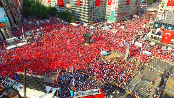 Her yaş, meslek ve her görüşten insanın bir araya gelerek hınca hınç doldurduğu Kızılay Milli İrade Meydanı, FETÖ'cü terörislerin lanetlendiği, al yıldızlı bayraklarla tam birlik, dayanışma ve demokrasi mesajlarının verildiği alan olarak tarihe geçti.