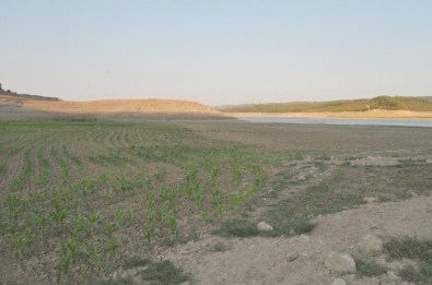 Keşan'da İçme Suyunu Karşılayan Barajın Kuruyan Alanlarına Ürün Ektiler