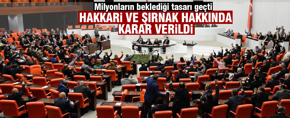 Torba tasarının 80 maddesi, TBMM Genel Kurulu'nda kabul edilirken, Hakkari ve Şırnak'la ilgili madde tasarıdan çıkarıldı.
