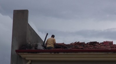 Yıldırım Düşen Okul Çatısında Yangın Çıktı