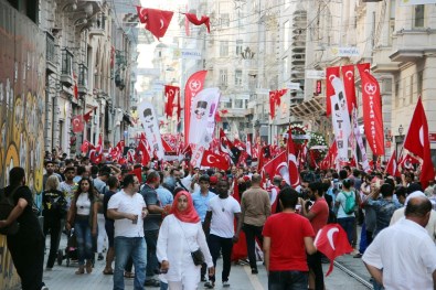 Bazı vatandaşların binalara “Kahrolsun ABD, kahrolsun FETÖ, PKK, IŞİD” yazılı pankartlar açması dikkat çekti. FETÖ örgütünün de protesto edildiği 30 Ağustos yürüyüşünde kortejler halinde Galatasaray Meydanı’na gelen grup, burada bir basın açıklaması yaptı.