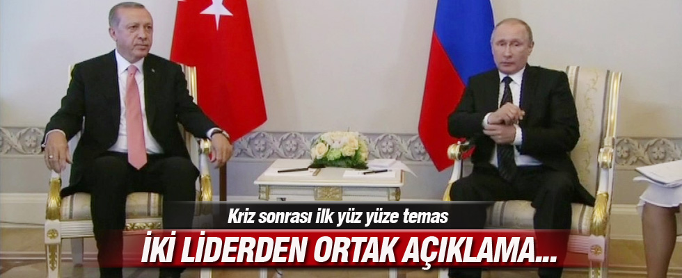 Cumhurbaşkanı Erdoğan ile Rusya Devlet Başkanı Vladimir Putin, uçak krizinin ardından ilk kez bir araya geldi. Putin, "Her türlü darbe girişimine karşıyız" derken, Erdoğan ise "Türkiye Rusya ilişkilerin çok farklı olumlu bir sürecin içine girmiştir" ifadelerini kullandı.