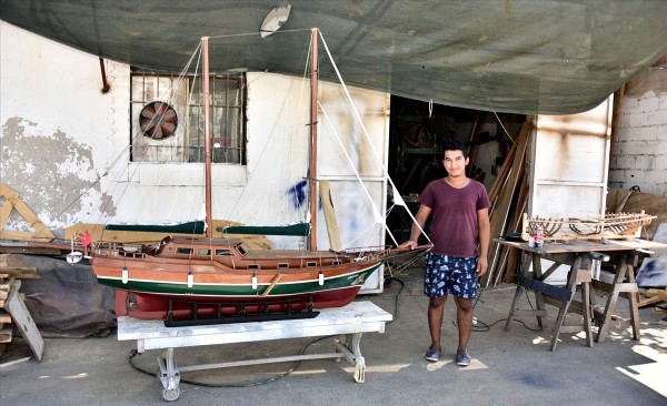 Bodrum ilçesinde, babasının yardımıyla öğrendiği tekne yapımını geliştiren Serkan Köse (18), yaptığı iki metrelik 'Aynakıç' modeli tekne maketi ile ilgi odağı oldu.