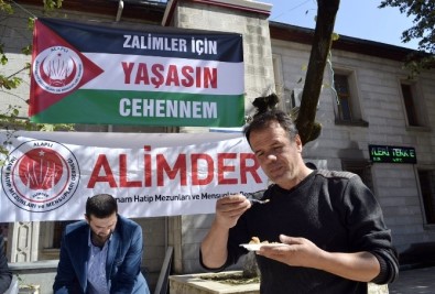 Bugün burada dağıttığımız helva hüznün değil sevincin, matemin değil bayramın helvası olduğunu anlatan Odabaş, ’’Zulmü alkışlamayan zalimi asla sevemem’ diyen bir ecdadın varisleri olarak bizler bugün ALİMDER olarak elinde binlerce masum Filistinli Müslüman’ın, mazlumun, günahsız çocukların kanı olan katil Simon Peres’in ölümünü sevinçle duymuş bulunmaktayız. Bugün burada dağıttığımız helva hüznü değil, sevincin, matemin değil bayramın helvasıdır. Peres, şimdi seni tarih bir zalim, bir katil olarak sayfalarına yazacak. Fosfor bombalarıyla şehit ettiğin masumlar yakana yapışacak. Etrafına duvarlar örüp acık hava hapishanesi haline getirdiğin Gazze’nin gözü yaşlı anneleri, kederli babaları karşılayacak seni, canlarını aldığın masum ve mazlumların hakları saracak etrafını katil Peres, yaktığın can kadar yanacak ve üzdüğün kadar üzüleceksin. Mekanın cehennem olsun, azabın bol olsun” dedi.