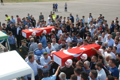 Şehitlerin cenazesi askeri uçaktan indirilerek tören mangası tarafından cenaze aracına taşındı. Şehitlerin yakınları ise gözyaşlarına boğuldu.
