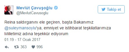 Dışişleri Bakanı Mevlüt Çavuşoğlu, Reina saldırganının yakalanmasının ardından açıklama yaptı