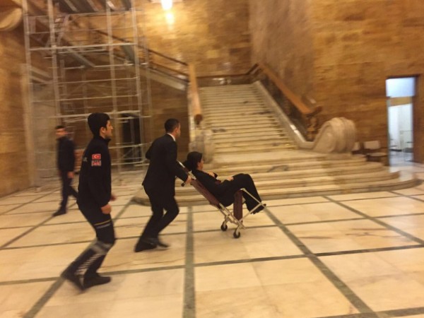 Şafak Pavey de daha sonra Aylin Nazlıaka'nın yanına geldi. Pavey'in kolundaki protezin çıktığı öğrenildi.