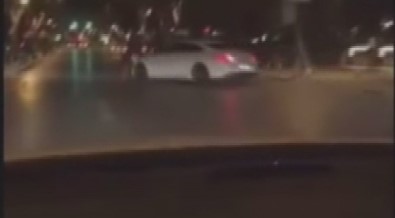 Son anda aracının hakimiyetini sağlayan şahıs, hiçbir şey olmamış gibi yoluna devam etti. Tüm bu yaşananlar cep telefonu kameralarına yansıdı. Görüntülerde drift yapan şahıslar caddede terör estiriyor. Bu sırada bir trafik magandası servis minibüsüne çarpmaktan son anda kurtuluyor. Daha sonra iki şahıs şovlarına devam ediyor.