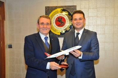 Ziyaretten duyduğu memnuniyeti ifade eden Samsun TSO Yönetim Kurulu Üyesi Salih Zeki Murzioğlu, “Öncelikle yeni görevinizde başarılar diliyorum. Türk Hava Yolları son yıllarda çığır açtı. Yaptığı atılımlarla dünyada bir ekol oldu. Dünyada en çok noktaya uçuş yapan ve altı yıldır da Avrupa’nın en iyi havayolu şirketi seçilen THY’nin yaptığı yenilikler, uygulamalar olumlu yönde ilimize de yansıdı. Havaalanımızdaki uçak seferlerine paralel olarak yolcu sayımız da her geçen gün artıyor. Yatırımlar artıkça, şehir geliştikçe hava taşımacılığı gelişiyor. Hava yolu taşımacılığı alternatifleri artıkça kentler de gelişiyor. THY Samsun Müdürlüğümüzle uzun zamandır çok yakın ilişki içindeyiz. Samsun, hava, kara, deniz ve demir yoluna sahip Türkiye’deki dört ilden bir tanesi. Oda olarak her zaman sizlerin yanındayız. Yürüteceğiniz çalışma ve projelerde üzerimize düşen görev olursa da seve seve destek olmaya hazırız. Gönül isterdi ki havaalanımız kapanmasın. Ama sizin de ifade ettiğiniz gibi önümüzdeki süreçte elbirliği ile dezavantajlı durumumuzu avantaja çevireceğimize inanıyorum” şeklinde konuştu.
