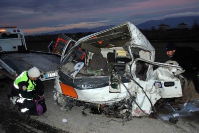 oksijen tüpü yüklü kamyonet çarpıştı. Kaza sonrası kamyonet sürücüsü ile kamyonette yolcu olarak bulunan Esmagül Özdemir(11) kabinde sıkıştı. Erdel ve Özdemir, sıkıştığı yerden