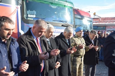 Şebinkarahisar ilçe meydanın İlçe Müftüsü İsa Yaykın tarafından yapılan duanın ardından TIR’lar Halep’e ulaştırılmak üzere yola çıktı. TIR’ları uğurlamak için İlçe İlçeye yeni atanan Kaymakam Erdoğan Kanyılmaz da katıldı.
