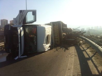 Aliağa yönüne giden L.Ç. (39) idaresindeki 35 AN 9230 plakalı hurda yüklü tır, sürücünün
