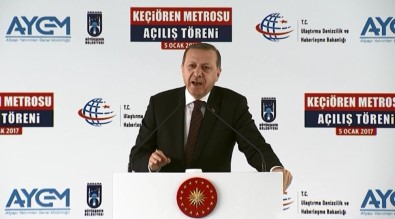 Burada vatandaşlara seslenen Cumhurbaşkanı Erdoğan, “Keçiören metrosu hattının ülkemize, şehrimize, ilçemize, milletimize hayırlı olmasını diliyorum. Bir milyar TL yatırım bedeli olan ve 9 bin 220 metre uzunluğa, 9 istasyona sahip bu metro ile Keçiören ilçemizde yaşanan trafik sıkıntımızın önemli ölçüde çözüme kavuşacağına inanıyorum. Yaklaşık 11 yıl Keçiören de ikamet etmiş bir kardeşiniz olarak, metronun inşası sürecinde yaşadığınız sıkıntıları yakından biliyorum. Sabrın sonu selamettir. Hem biraz geç hem de biraz güç olan bu projenin bitirilmiş olmasını en az sizin kadar sevinçle karşıladığımı belirtmek istiyorum” diye konuştu.