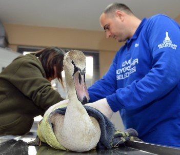 Uçarken yorulup İzmir Doğal Yaşam Parkı’ndaki Kuğu Gölü’ne iniş yapan 6 aylık beyaz kuğu, tedavi altına alındı. Sevimli hayvan, tamamen iyileştikten sonra yeniden doğaya bırakılacak.