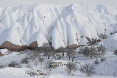 Türkiye’nin en önemli turizm merkezlerinden biri olan Kapadokya’da kar yağışı ile birlikte peribacaları beyaz örtüye büründü.