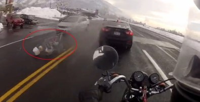 ABD’de bir şahsın marketten aldığı ürünleri taşıdığı alışveriş arabası, kontrolü kaybedilince yola çıktı.