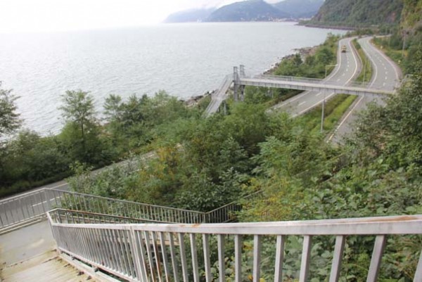 Yaya geçidinin bir ucundan diğer ucuna ulaşmak için 300 metreye yakın bir yolu yürümek ve 200'e yakın basamak çıkmak gerekiyor. İlginç yaya geçidinin sahile yakın bölümdeki ucu ile köy yoluna bağlanan diğer ucu arasında ortalama 70 metre de yükseklik farkı bulunuyor.