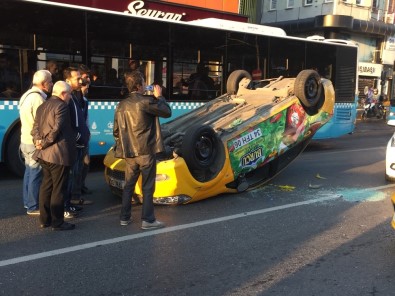İSTANBUL – İstanbul Fatih’te sürücüsünün direksiyon hakimiyetini kaybettiği ticari taksi takla attı. Sürücü kazayı burnu bile kanamadan atlattı.