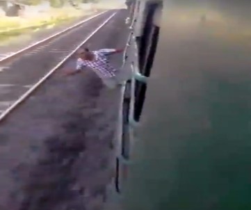Hızla giden trenden sarkan