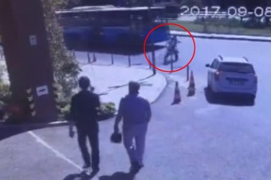 Güvenlik kameralarına yansıyan görüntülerde, kaldırımda yürüyen çift bir anda koşarak yolun karşısına geçmek istiyor. Yolun ortasına gelen çifte o esnada seyir halinde olan belediye otobüsü çarpıyor. Çarpmanın etkisiyle çift yola savruluyor ardından da ayağa kalkarak kaldırıma yürüyor. Otobüs ise geriye kayarak arkasındaki taksiye çarpıyor.