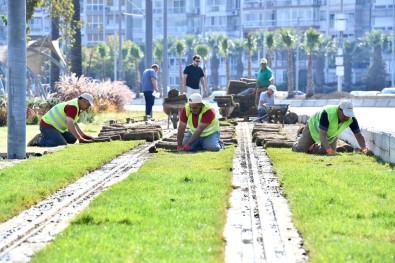 Konak hattında 21 santim derinlikte toplam 35 bin metrekare alana çim serecek olan İzmir Büyükşehir Belediyesinin bu uygulaması, vatandaşlar tarafından da büyük beğeni topluyor. Üçkuyular İskelesinden çalışmalarına başlayan ekipler, deniz tarafında Göztepe Köprüsüne kadar uzanan bölgede çim serimini tamamlandı. Liman Caddesi ile Gazi Bulvarındaki çalışmalarını da tamamlayan ekipler, Üçkuyular ile Mithatpaşa Caddesi arasındaki çalışmalarını ise sürdürüyor.