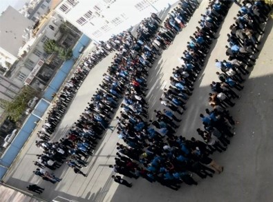 Okulun bahçesinde öğrenciler ‘oku’ kelimesi oluşturdu.
