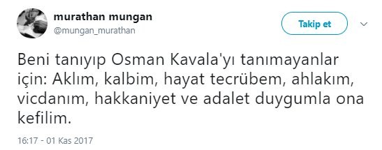 FETÖ'ye yönelik soruşturmalar kapsamında tutuklanan Osman Kavala'nın tutuklanmasına bir tepki de şair Murathan Mungan'dan geldi.