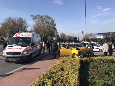 ticari taksi çarptı. Çarpışma sonucu kontrolden çıkan taksi, kaldırımı aşarak yeşillik alana girdi. Otomobil ise yön levhasına çarparak durabildi. Kaza sonucu